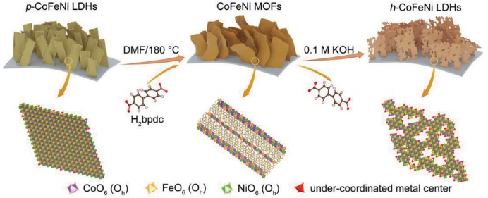 36. Sun, H., Chen, L., Lian, Y., Yang, W., Lin, L., Chen, Y., Xu, J., Wang, D., Yang, X., Rümmerli, M., Guo, J., Zhong, J*., Deng, Z., Jiao, Y*., Peng, Y*., Qiao, S. Topotactically Transformed Polygonal Mesopores on Ternary Layered Double Hydroxides Exposing Under-Coordinated Metal Centers for Accelerated Water Dissociation; Adv. Mater, 32, 2006784 (2020).